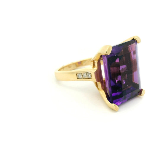 Emerald Cut Amethyst & Diamond Coctail Ring