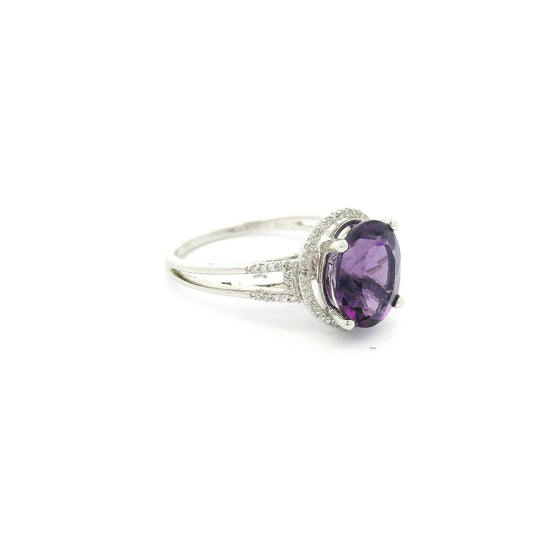 Oval Amethyst Ring With Diamond Halo