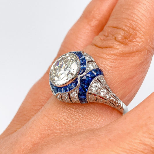 2.41ct GIA Certified M/VS1 Diamond & French Cut Sapphire Ring, Platinum