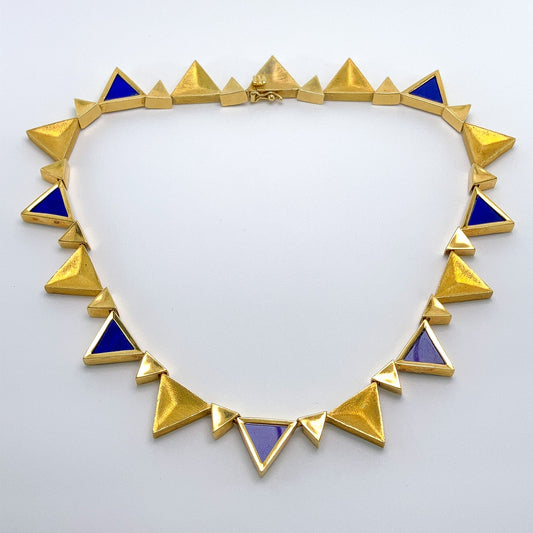 Greek Lapis Lazuli Triangle Collar Necklace by Mapamenos Natepas, 18k º
