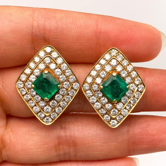 Vintage Italian Emerald & Diamond Shape Earrings, 18k º