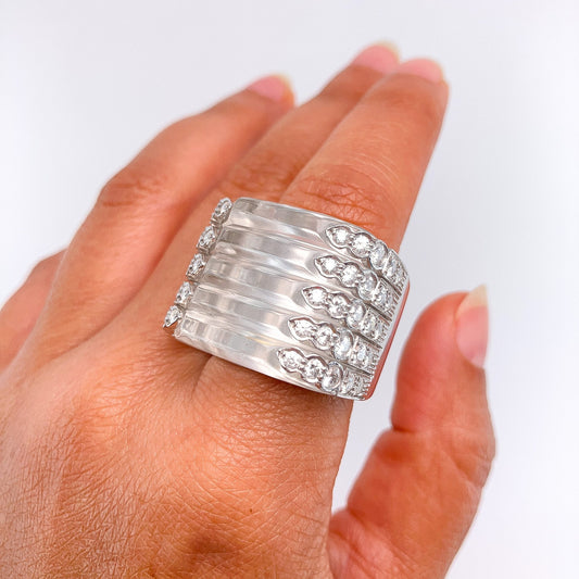 Vintage Rock Crystal & Diamond Cocktail Ring by Valentin Magro, Platinum º