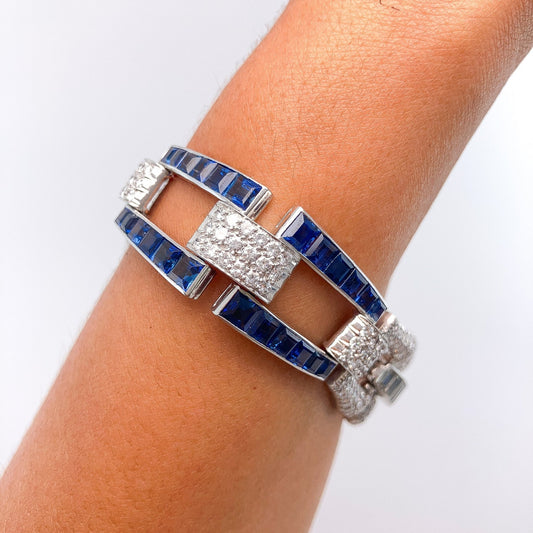 Vintage Sapphire & Diamond Openwork Bracelet, Platinum º