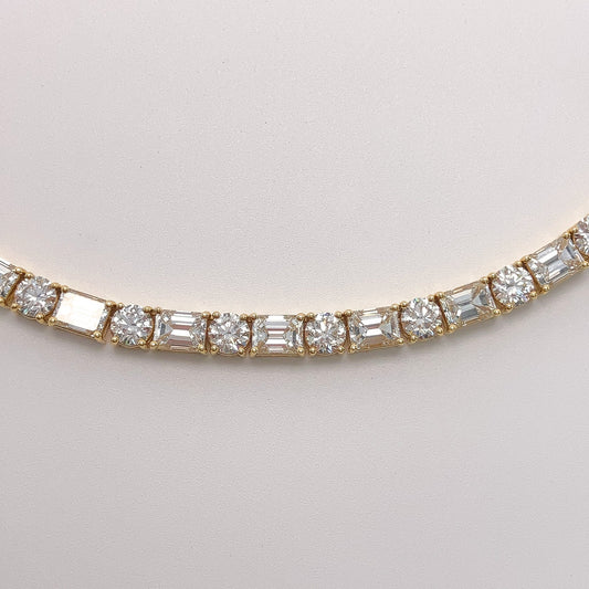 36.49cts Round & Emerald Cut Diamond Tennis Necklace, 18k º