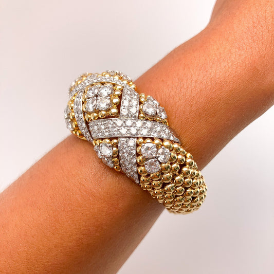 French Vintage Textured Basketweave Bracelet with Diamonds, 18k º