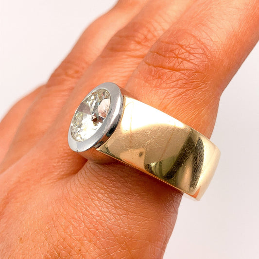 4.80ct Round Diamond Bezel Ring by Schubart, 18k & Platinum º