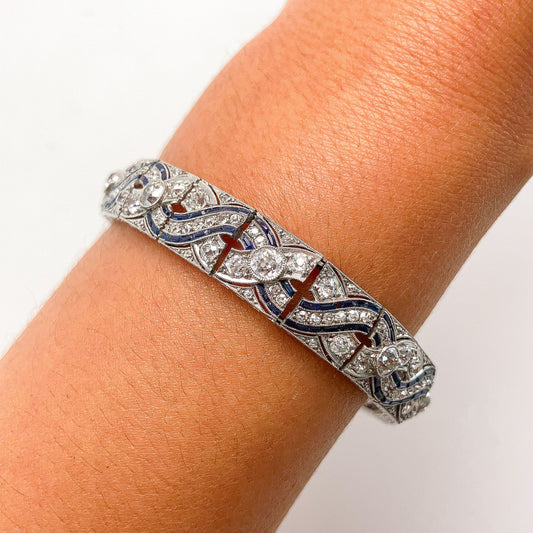 Art Deco Sapphire Calibre & Diamond Bracelet, Platinum º