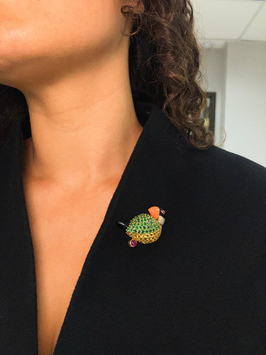 Vintage Gemstone Puffin Brooch by Jean Vitau, 18k º