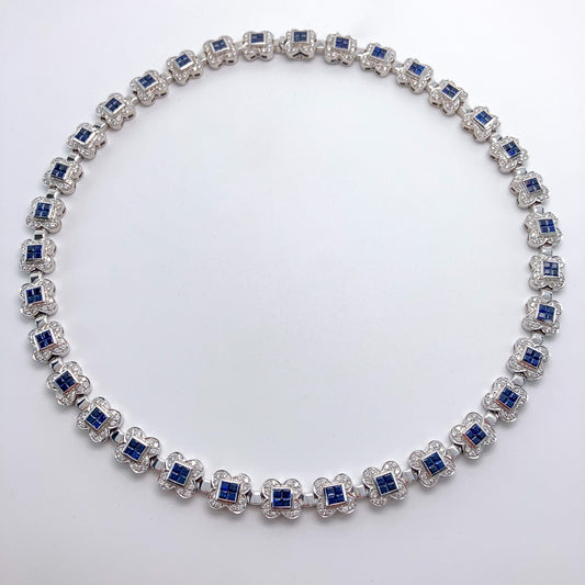 Sapphire & Diamond Flower Necklace, 18k º