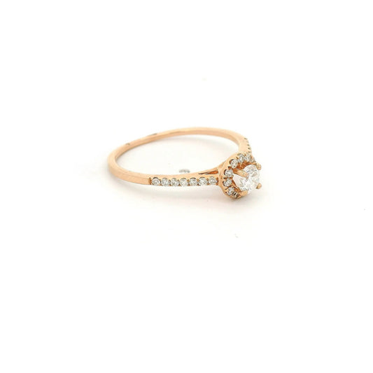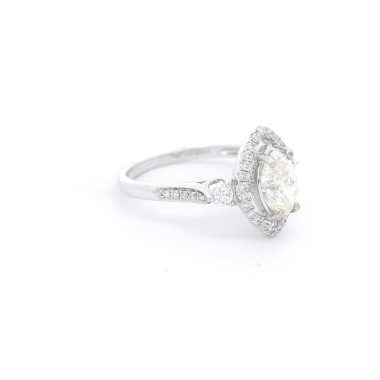 Round Brilliant Cut Diamond Bridal Ring With Diamond Halo and Diamonds Down Shank