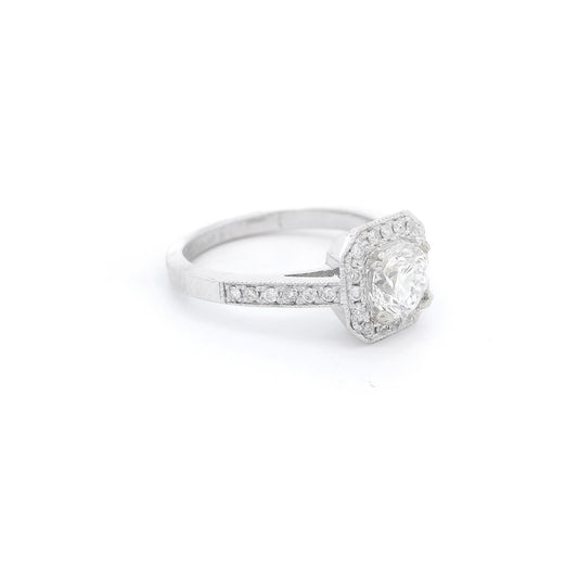 Octagon Head Round Cut Diamond Bridal Ring with Milgrain