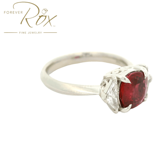 Custom Burma Ruby & Chevron Cut Diamond Ring