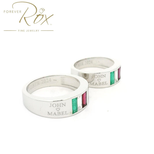 Custom Italian Flag Emerald, Diamond & Ruby Matching Rings