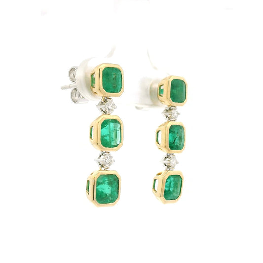 Bezel Set Emerald & Diamond Dangles