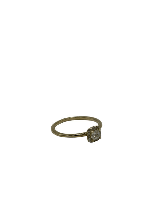 Princess Cut Diamond With Diamond Halo Yellow Gold Bridal Ring