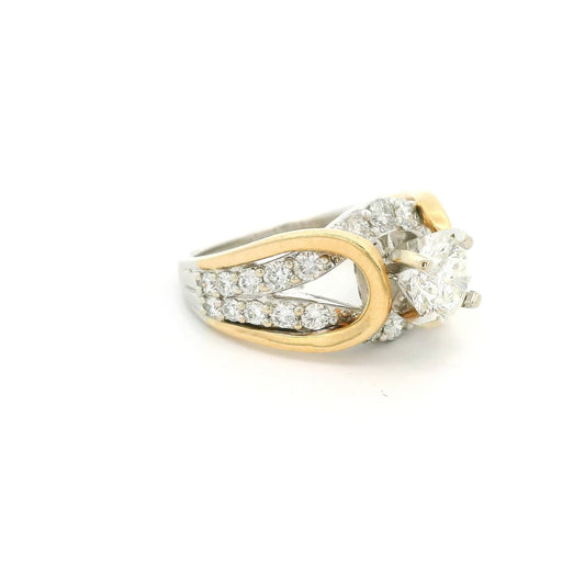 Round Brilliant Cut Diamond Bridal Ring With Pavé Set Diamonds Down Shank