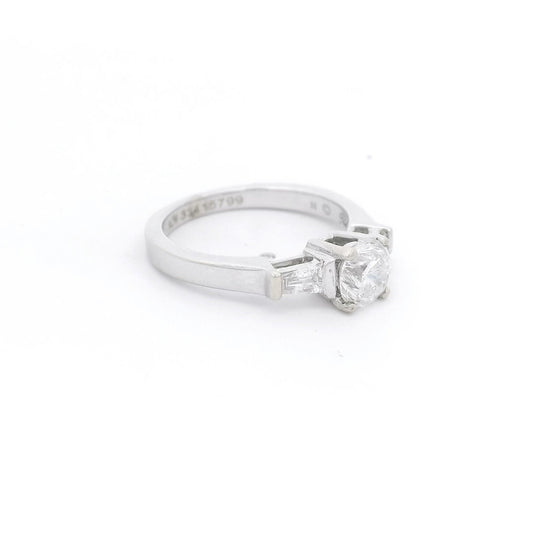 Round Diamond Bridal Ring With Two Tapered Baguette Cut Diamonds