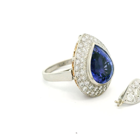 Pear Shape Tanzanite & Diamond Convertible to Pendant Ring with Diamond Bail