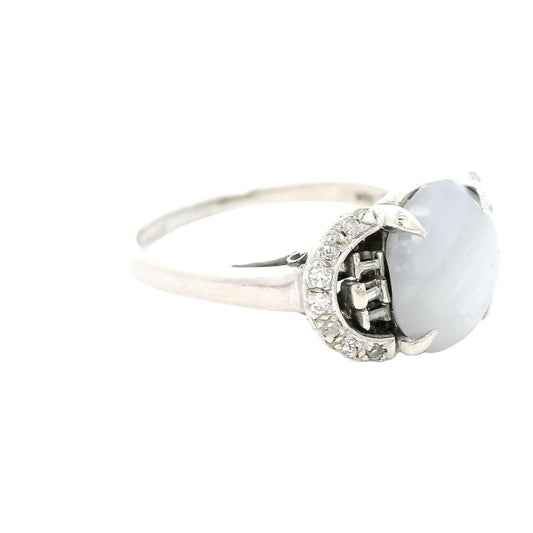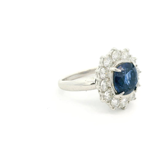 Ceylon Sapphire Ring With Baguette & Round Cut Diamonds