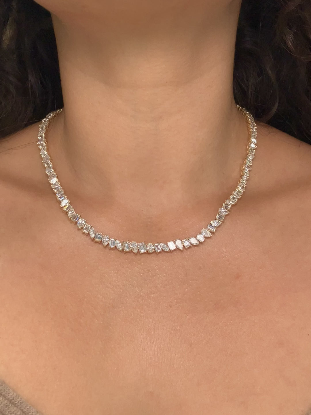 29.18ctw Mixed Cut Diamond Tennis Necklace