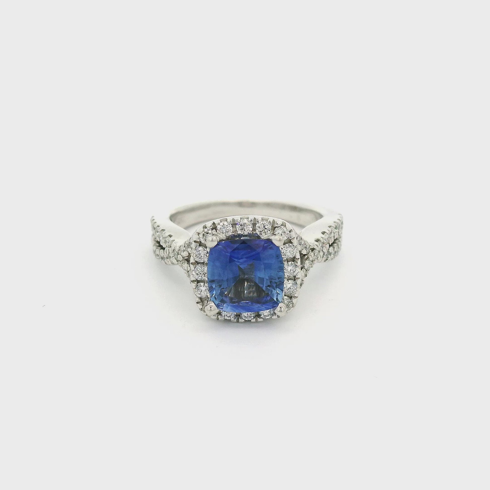 Cushion Cut Ceylon Sapphire & Diamond Ring