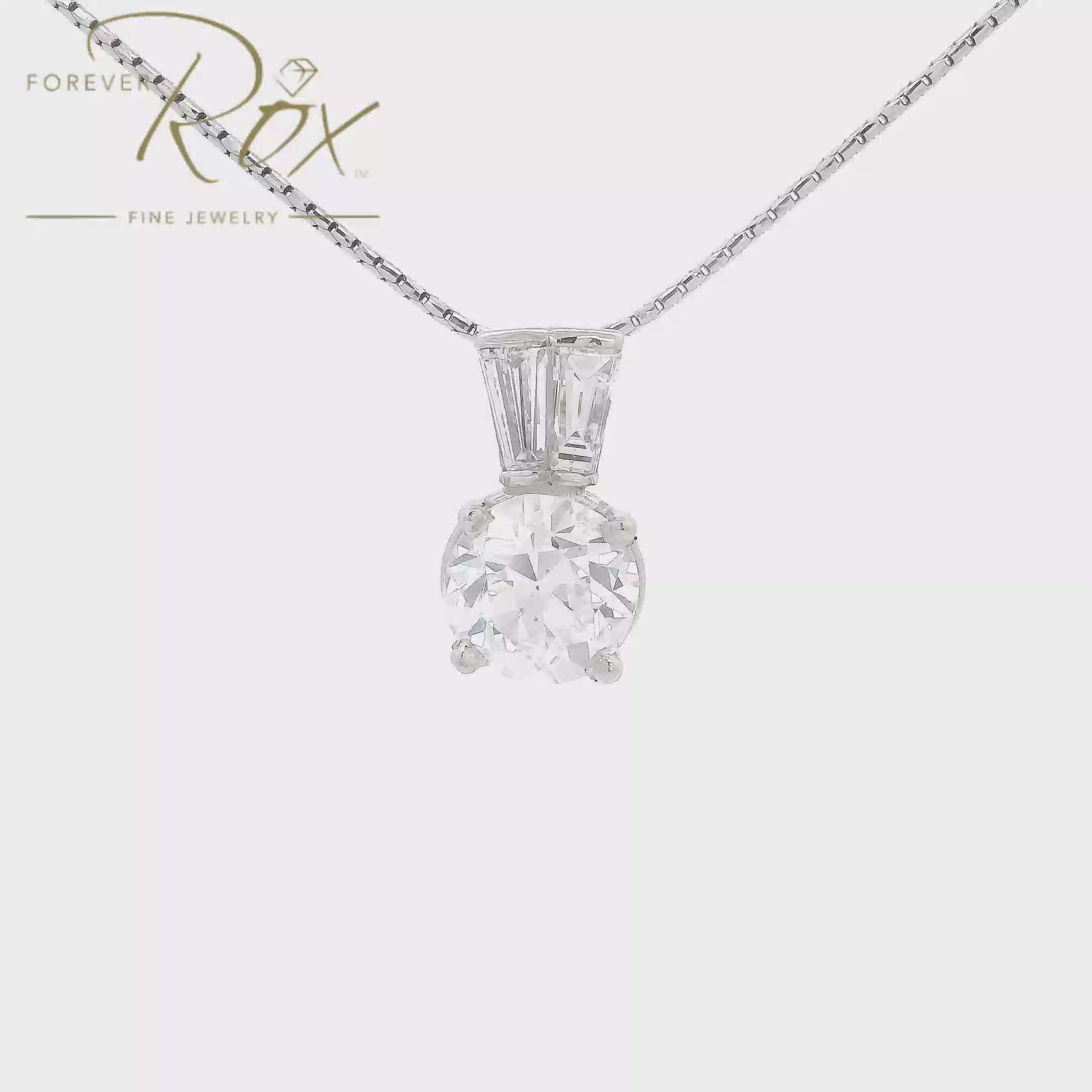 This pendant was made with stones from on of a clients mothers bracelets. It has one round cut diamond in the center and two tapered baguettes as the bail.