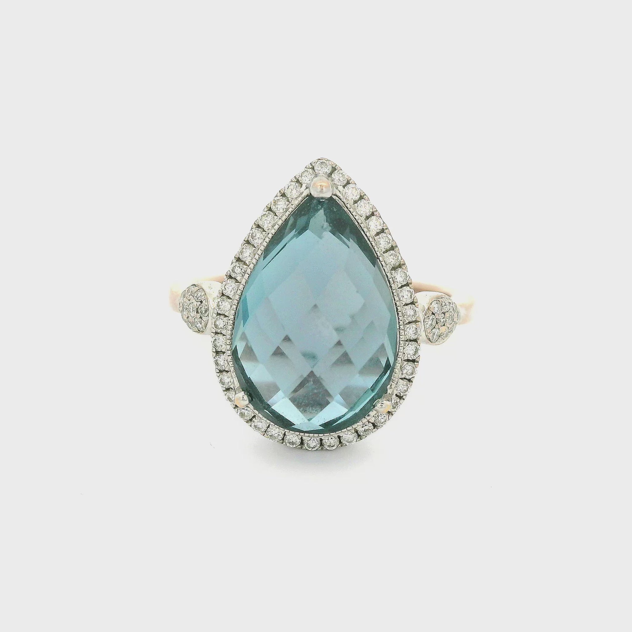 Fancy Cut Pear Shape Long Blue Topaz & Diamond Ring