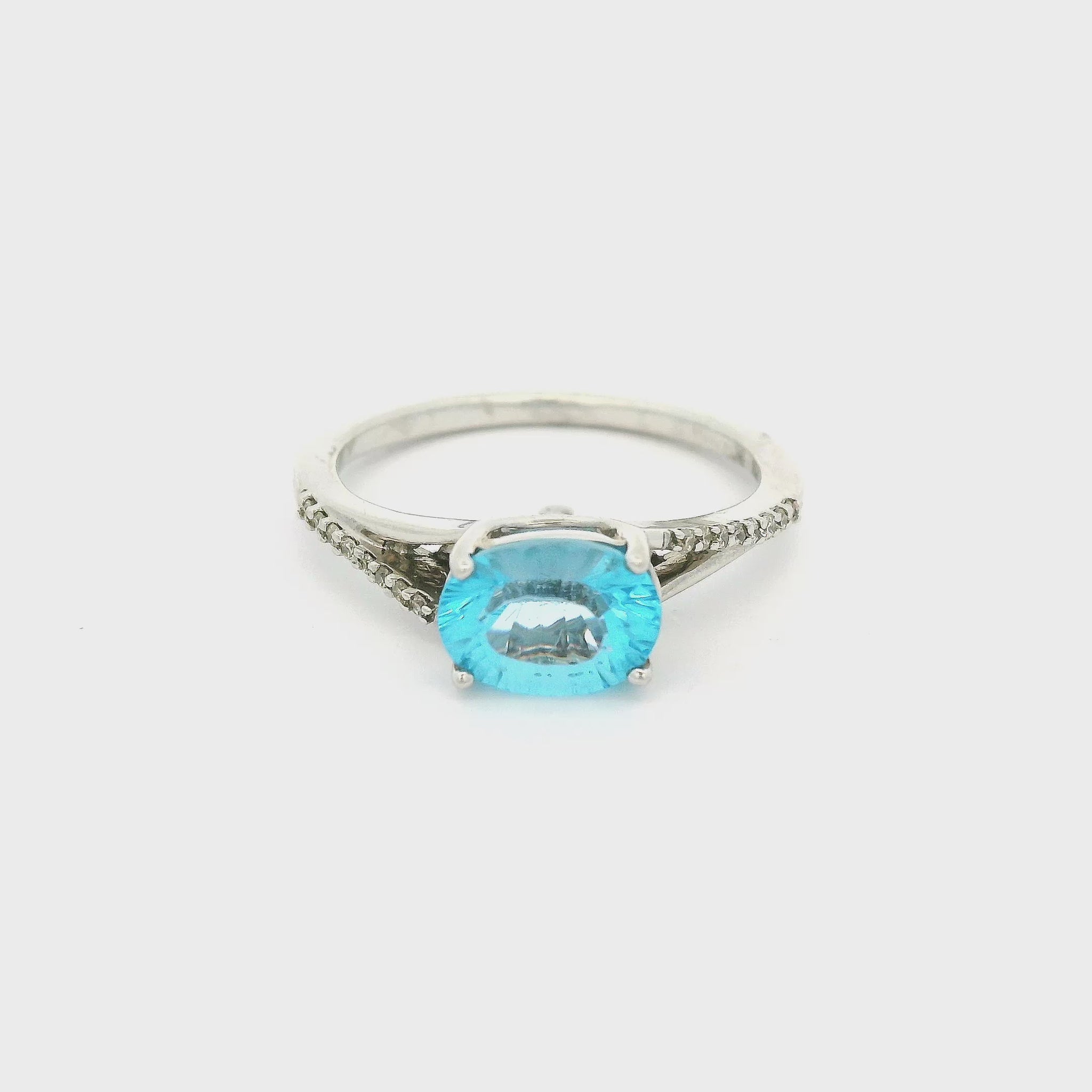 Product #: B427823> Stone Weight: 1.40ctw Oval Cut Blue Topaz. Accent Stone: .07ctw Diamonds. Metal: 14k White Gold.