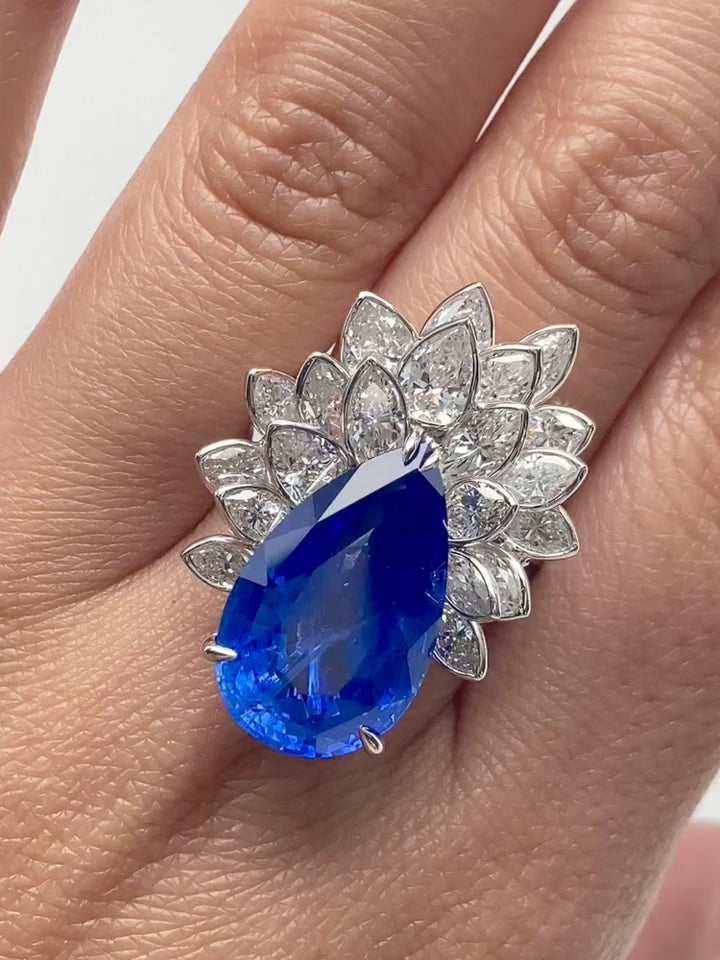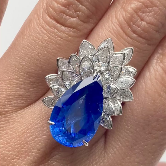 Pearshape Sapphire & Diamond Cluster Cocktail Ring