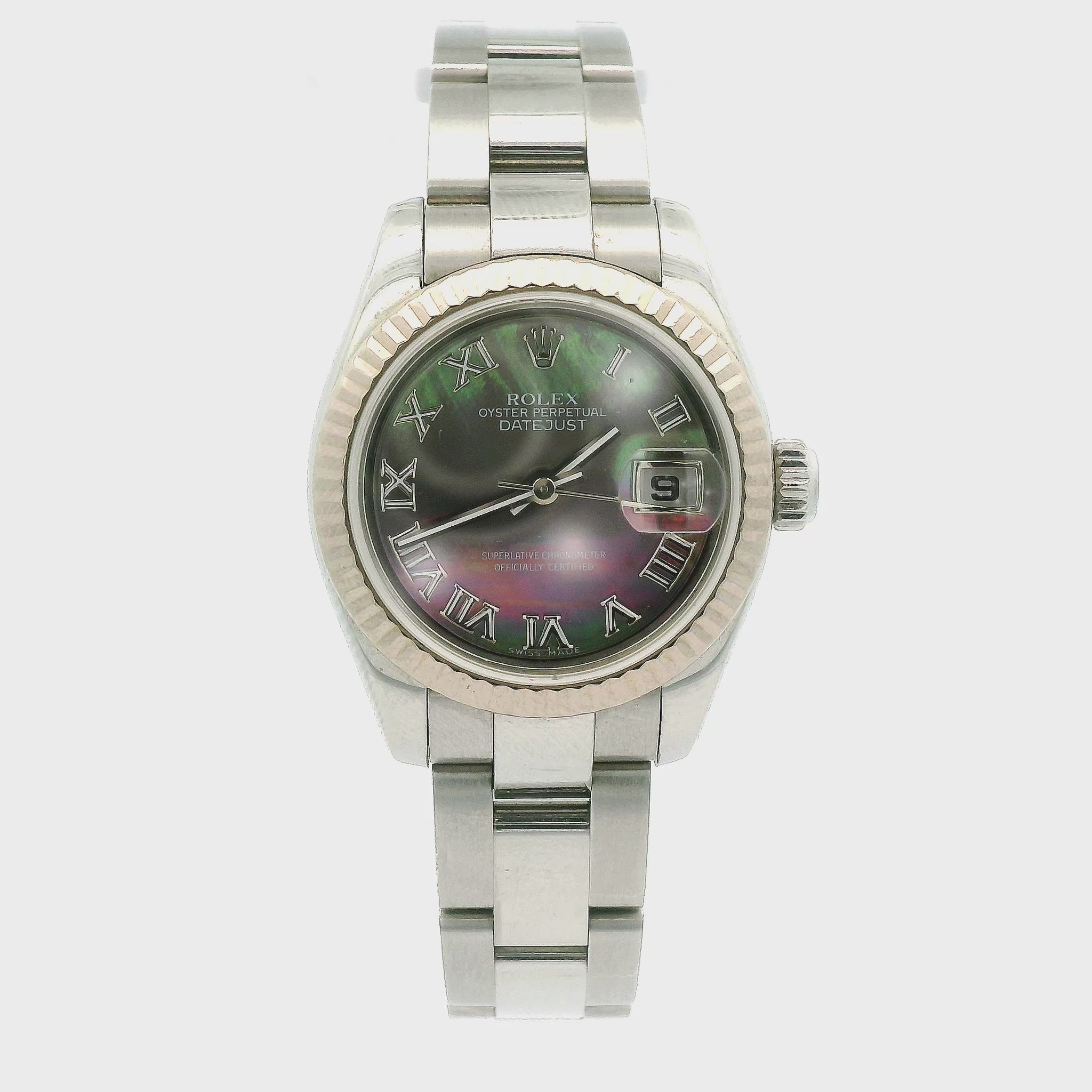 Steel Ladies Rolex Datejust Roman Dark Mother of Pearl Dial